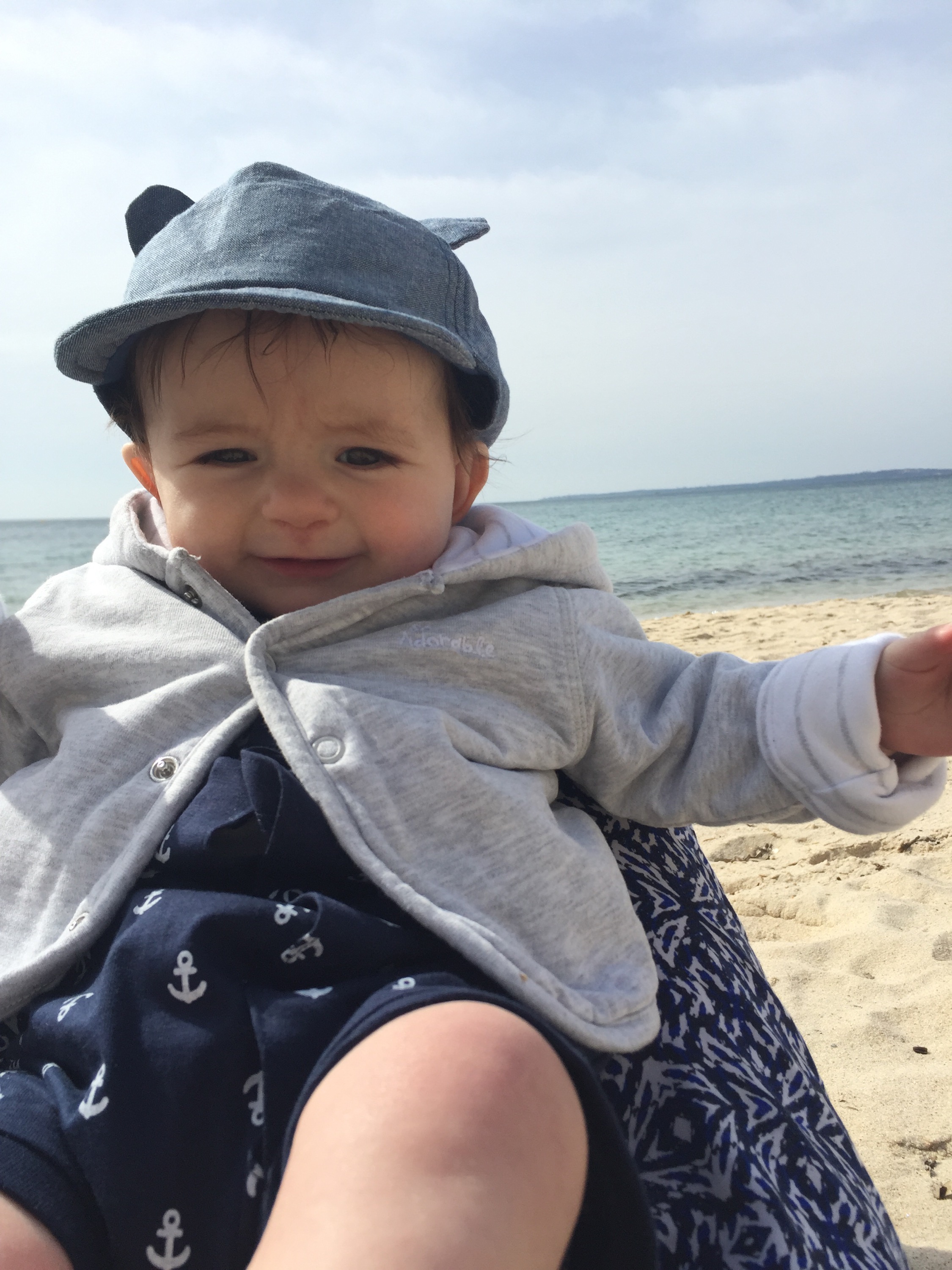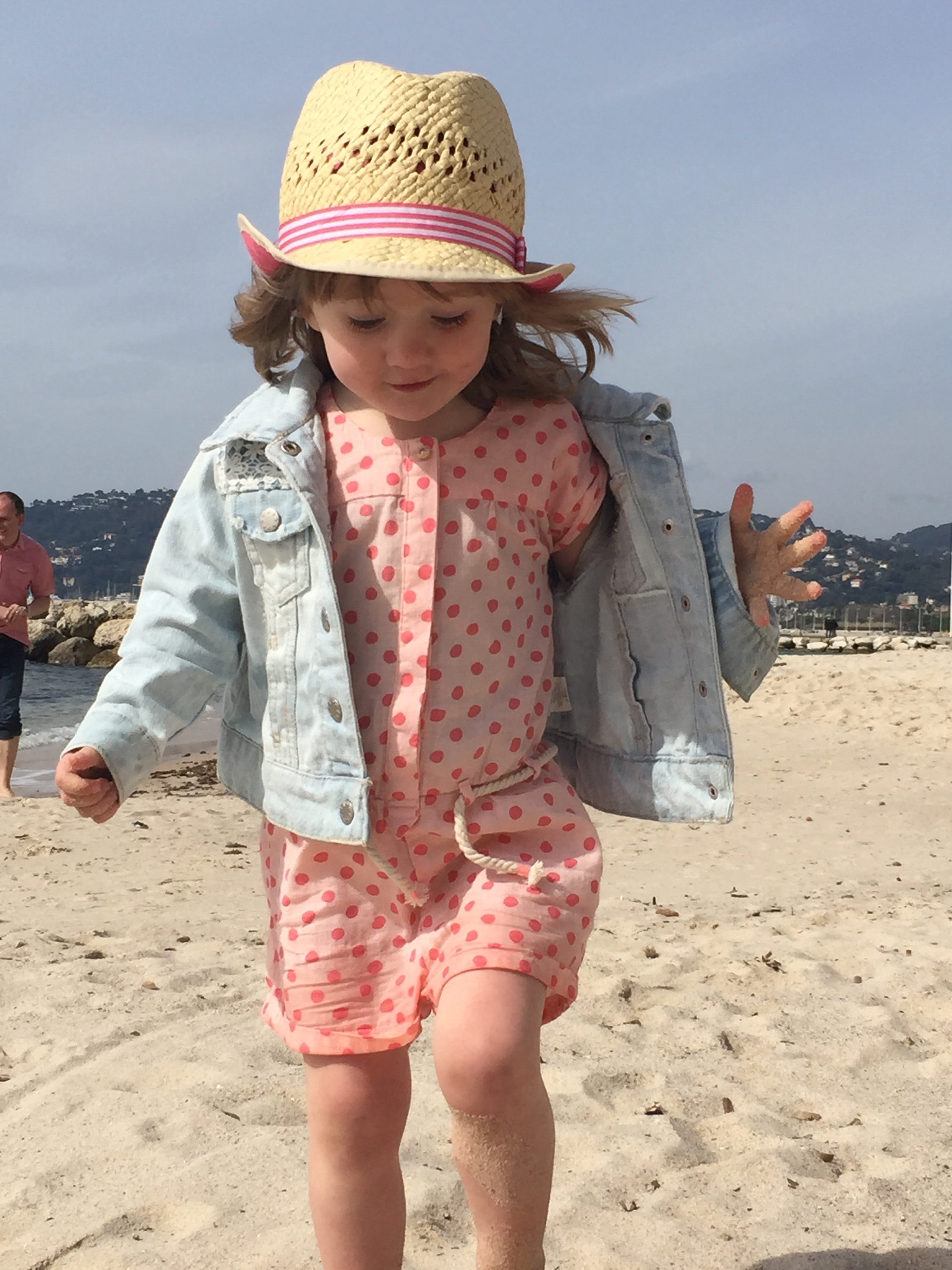 Writing this sitting on a beach, feeding Tom at a little place called Juan Les Pins. There’s a bit of a breeze but the sun feels warm on my head. Ava playing happily in the sea, even though the water is freezing! Kids just don’t feel cold the same way we do. Tom wasn’t so keen to feel the sea on his toes. Can’t say I blame him really. Lovely place. Everyone else is dressed for winter in hats and coats and scarves. We have our summer clothes on!