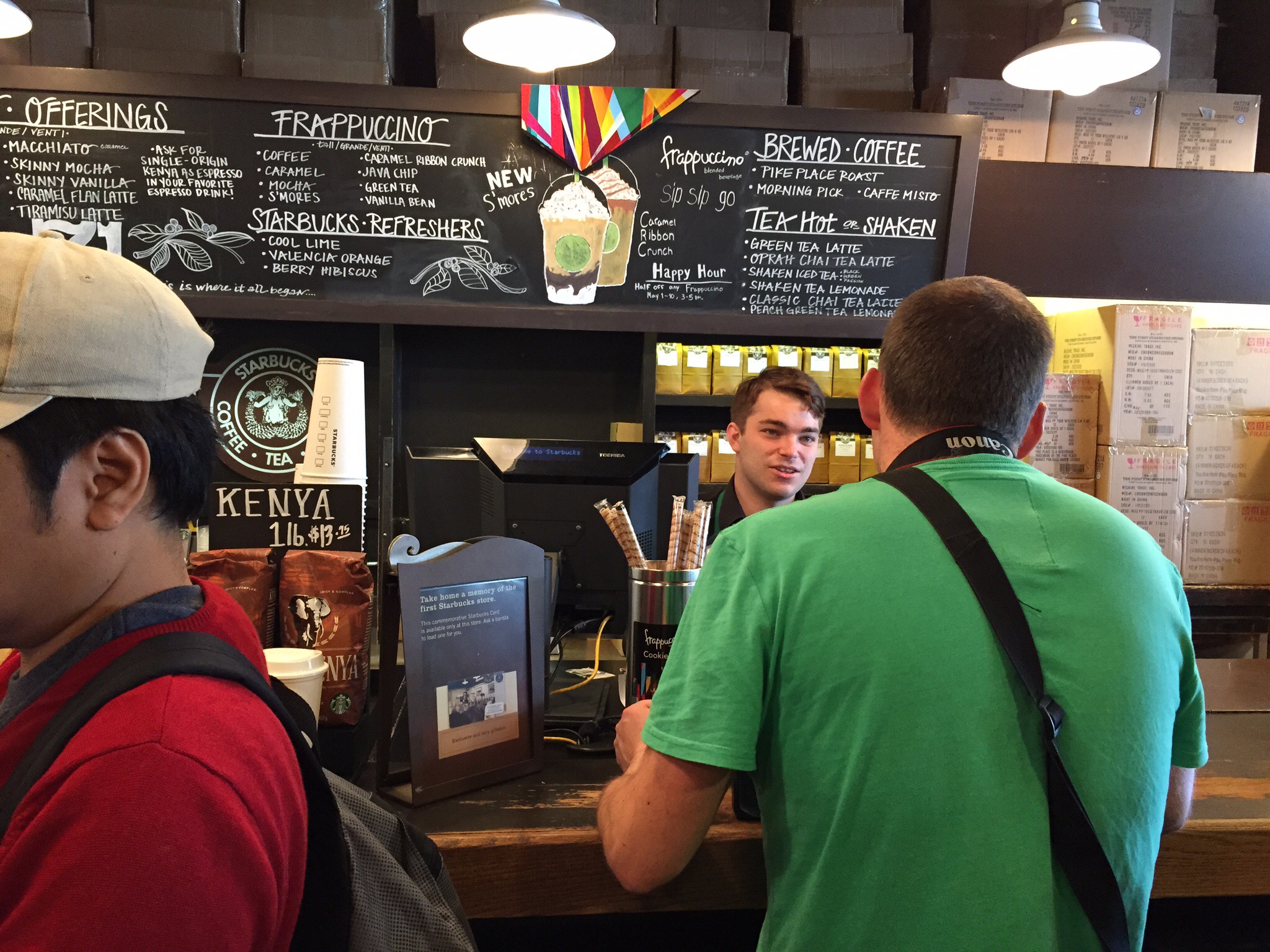 We left the hotel and headed up to get the monorail to the Space Needle. The streets were really quiet so we stopped off for a quick coffee at the first ever Starbucks. There was still a bit of a queue which is crazy as you don’t need to walk more than 200 yards before finding a Starbucks in this city.