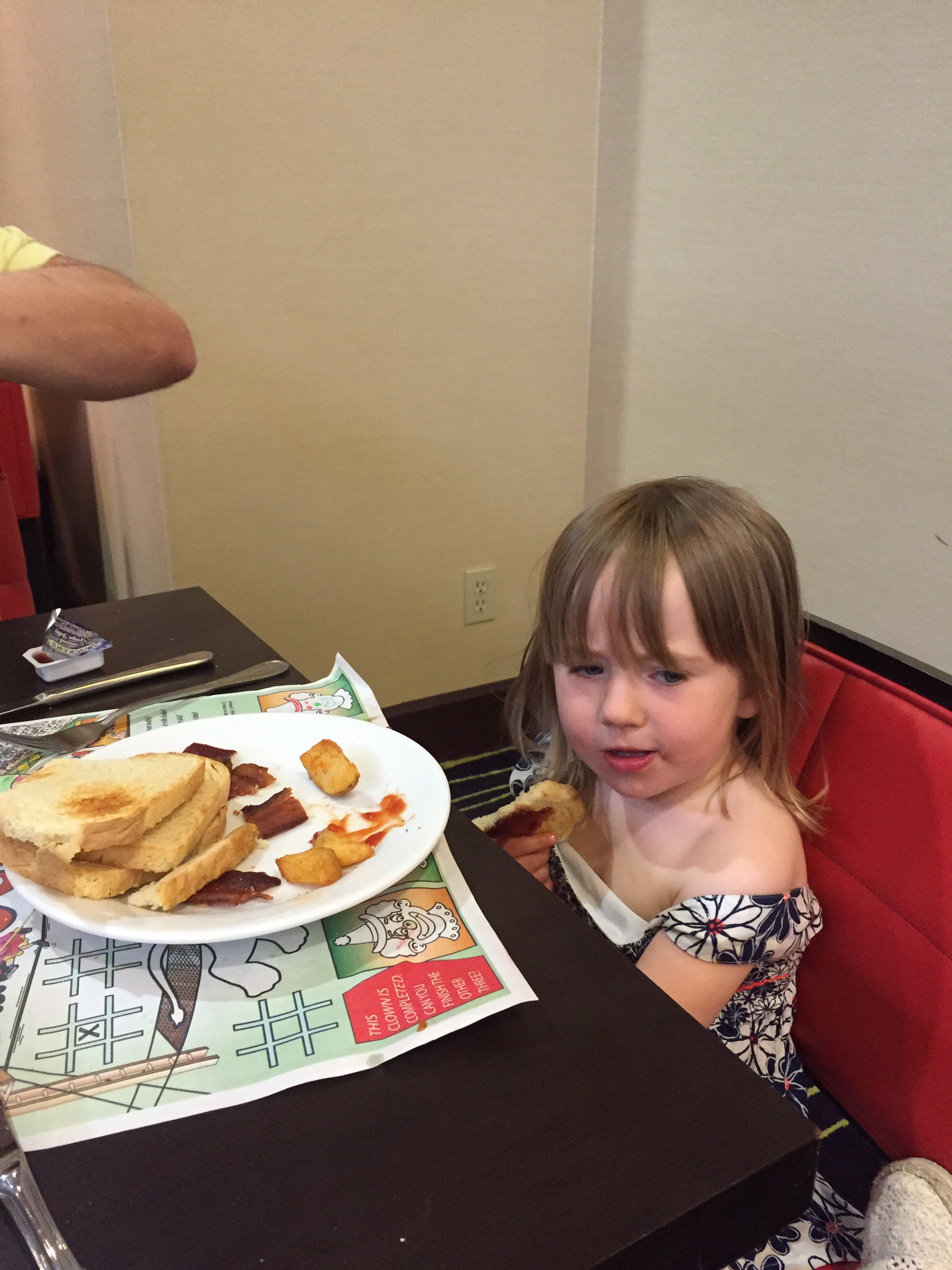 Well we slept well but were awake and waiting for the swimming pool to open at 6am! Talk about keen. Had a nice swim and then breakfast where Ava had her first American bacon and was a big fan!