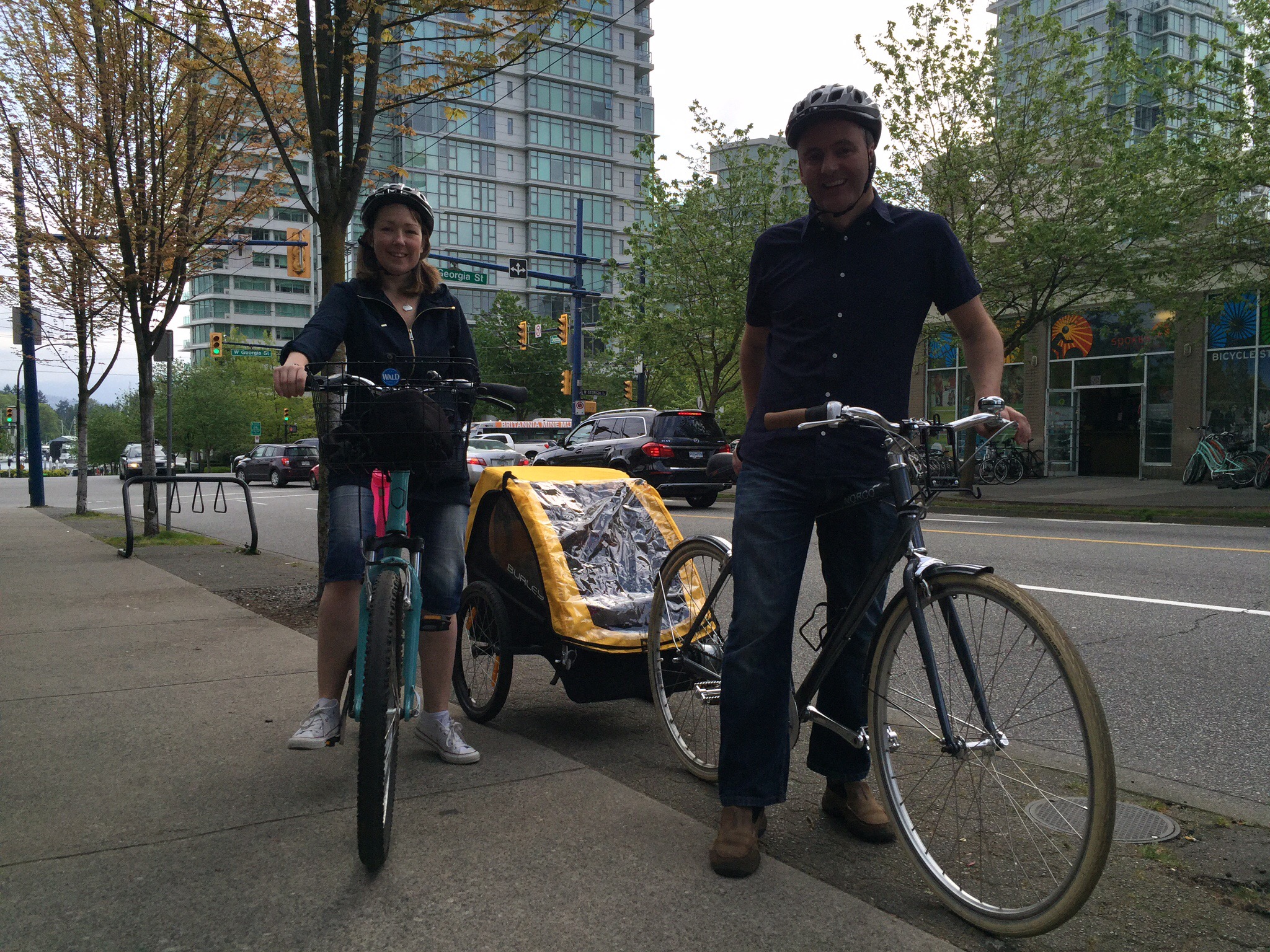 Our first morning in Vancouver and we walked round the corner to hire some bikes to explore Stanley Park. We got a trailer for the kids, Ava loved it but Tom wasn’t so keen although he fell asleep very quickly once we started moving.