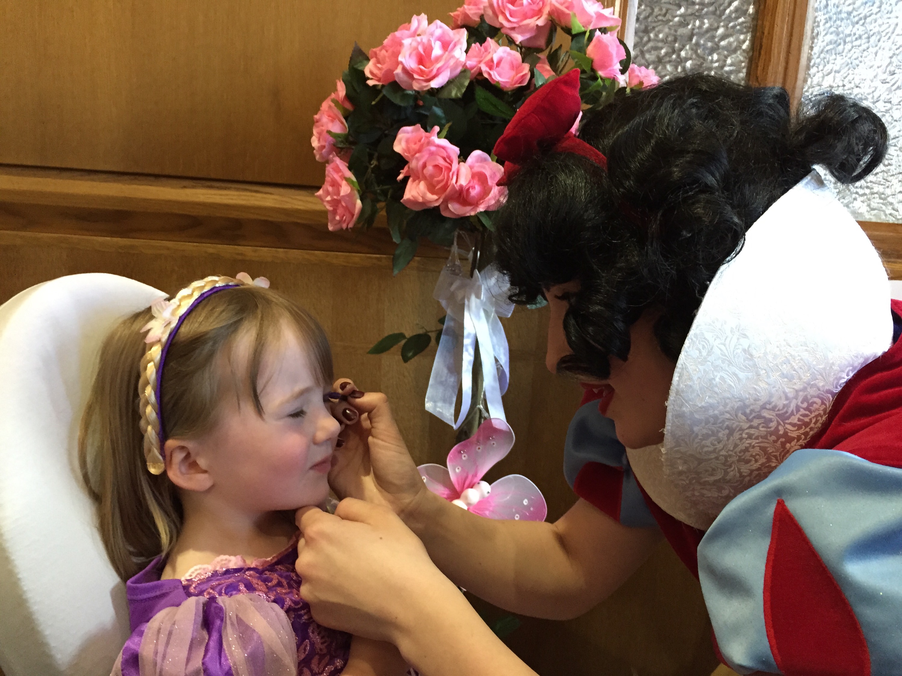 Next it was princess makeover time where they all had their make up done by one of the princesses and finished off by some glitter. Ava loves Sparkles! Or Farkles as she calls them as she can’t pronounce “sp” in words. It makes me laugh so much when she sings Incey wincey fider. Ava and Molly had their make up done by Snow White, who is Molly’s favourite princess. She was very sweet and talked to them all throughout.