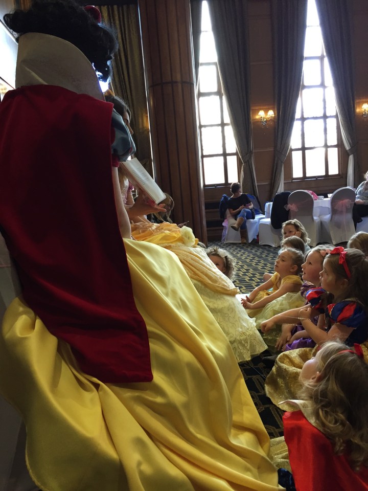 After the make up sessions the princesses all sang their song and did some more dancing. Next it was story time and Belle read the story of Beauty and the Beast to them all. Ava was enthralled and loved it.